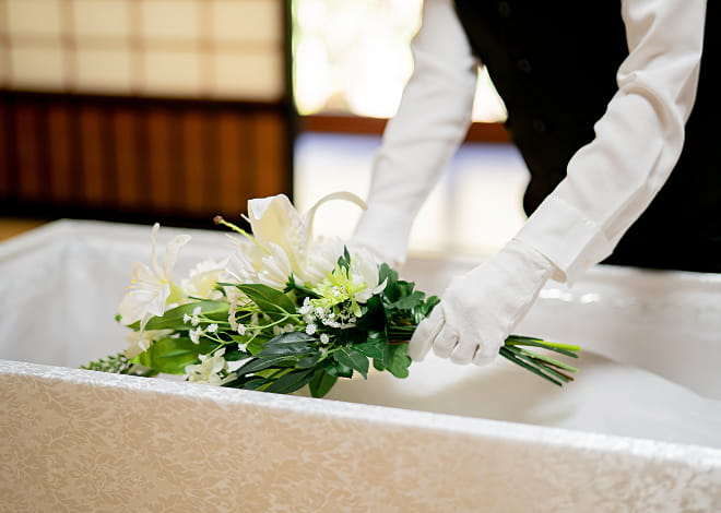 故人様をお棺に納めさせていただき、ご愛用の品を一緒にお納めいたします。
