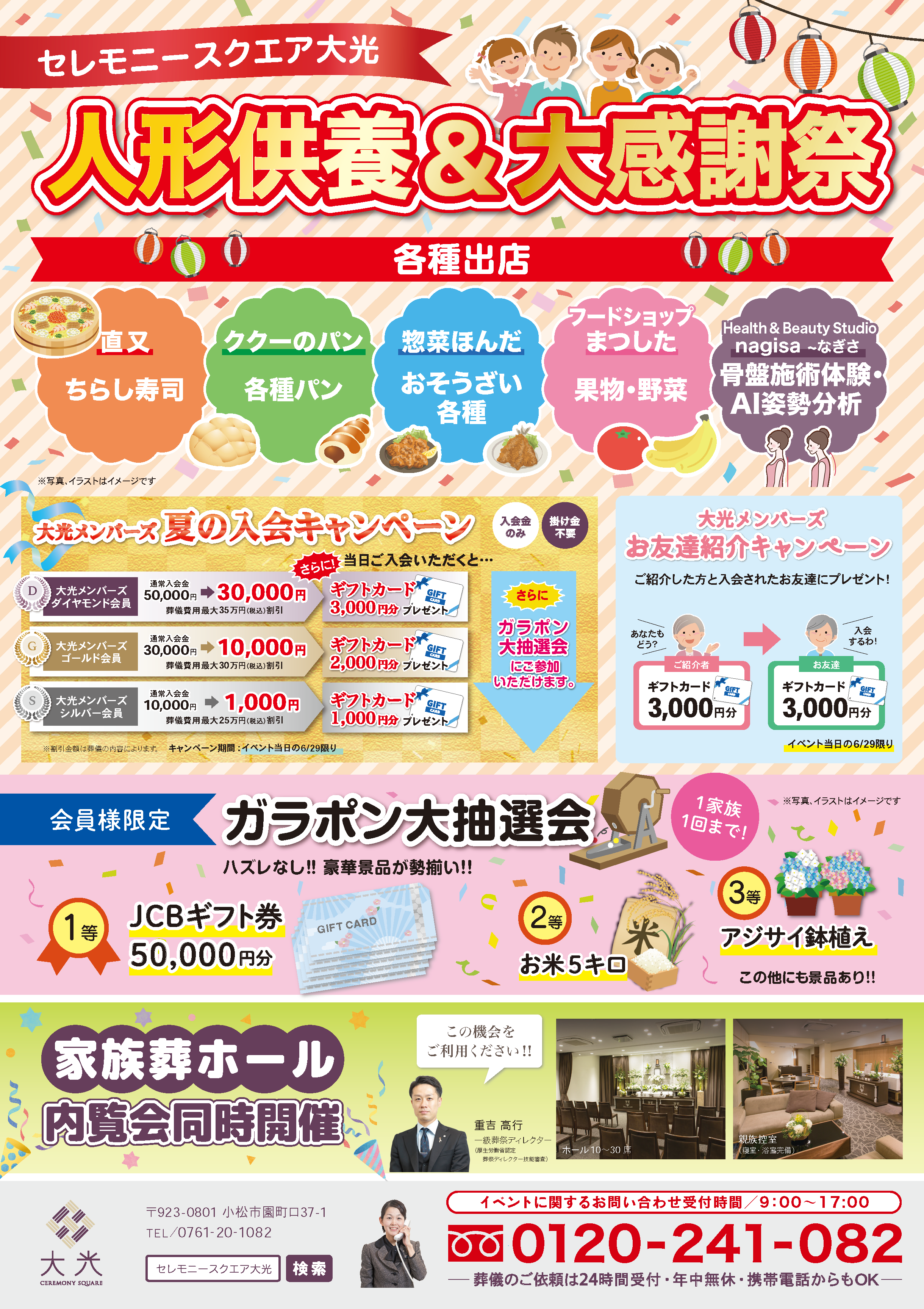 弊社の方で遺影を作成します。なるべくお顔がはっきりと写っているものをご用意下さい。